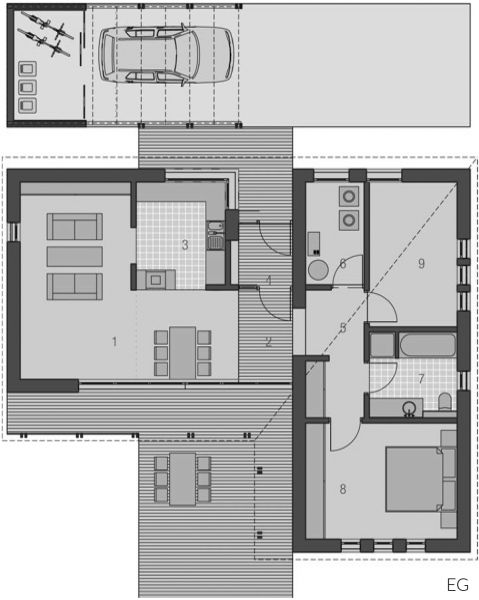 Wer hat in nicht? - Den Traum vom Sonnenuntergang auf der eigenen Veranda. Erfahren Sie die Geborgenheit eines Winkelhauses, das mit seinem geschützten Außenbereich auch für Privatsphäre sorgt. Haus "Seeluft" ermöglicht mit seinem kompakten Grundriss und den kurzen Wegen barrierefreies Wohnen auf einer Ebene. Genießen Sie Ihr komfortables und elegantes Traumhaus bis ins hohe Alter.