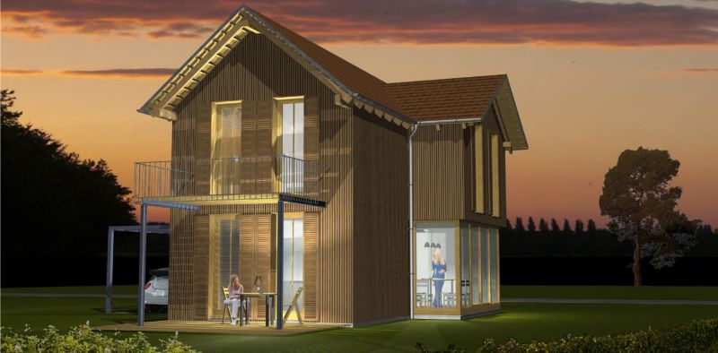 Der Haustyp "Wellental" besitzt durchgehend volle Raumhöhen im Obergeschoss und ein gekreuztes Satteldach. Die Raum- und Blickbezüge sind innen wie außen differenziert und spannungsvoll. Dies wird unter anderem durch die fein durchdachte Erschließung erzielt, die im Verhältnis zu den Wohnflächen nur wenig Raum beansprucht. Neben viel Platz für Küche, Ess- und Wohnzimmer im Erdgeschoss finden sich im Obergeschoss Elternschlafzimmer, zwei Kinderzimmer und Bad.